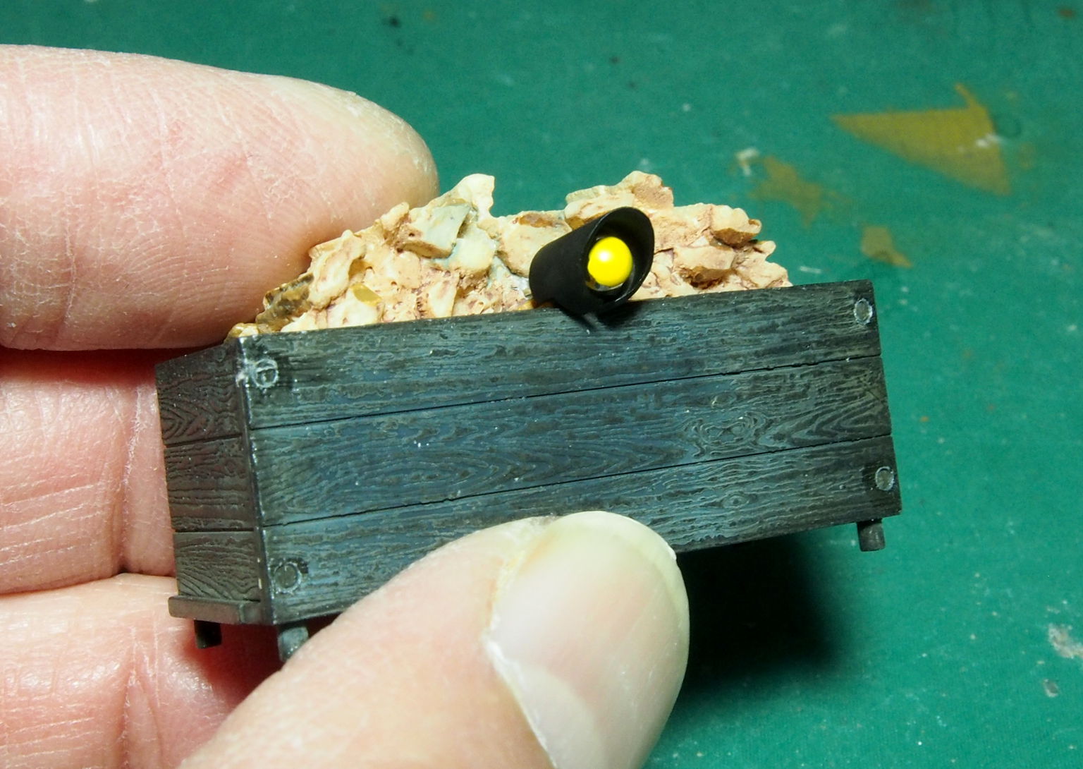 Shayに付属の薪にLEDをつけて、アルミのキャップをかぶせる.