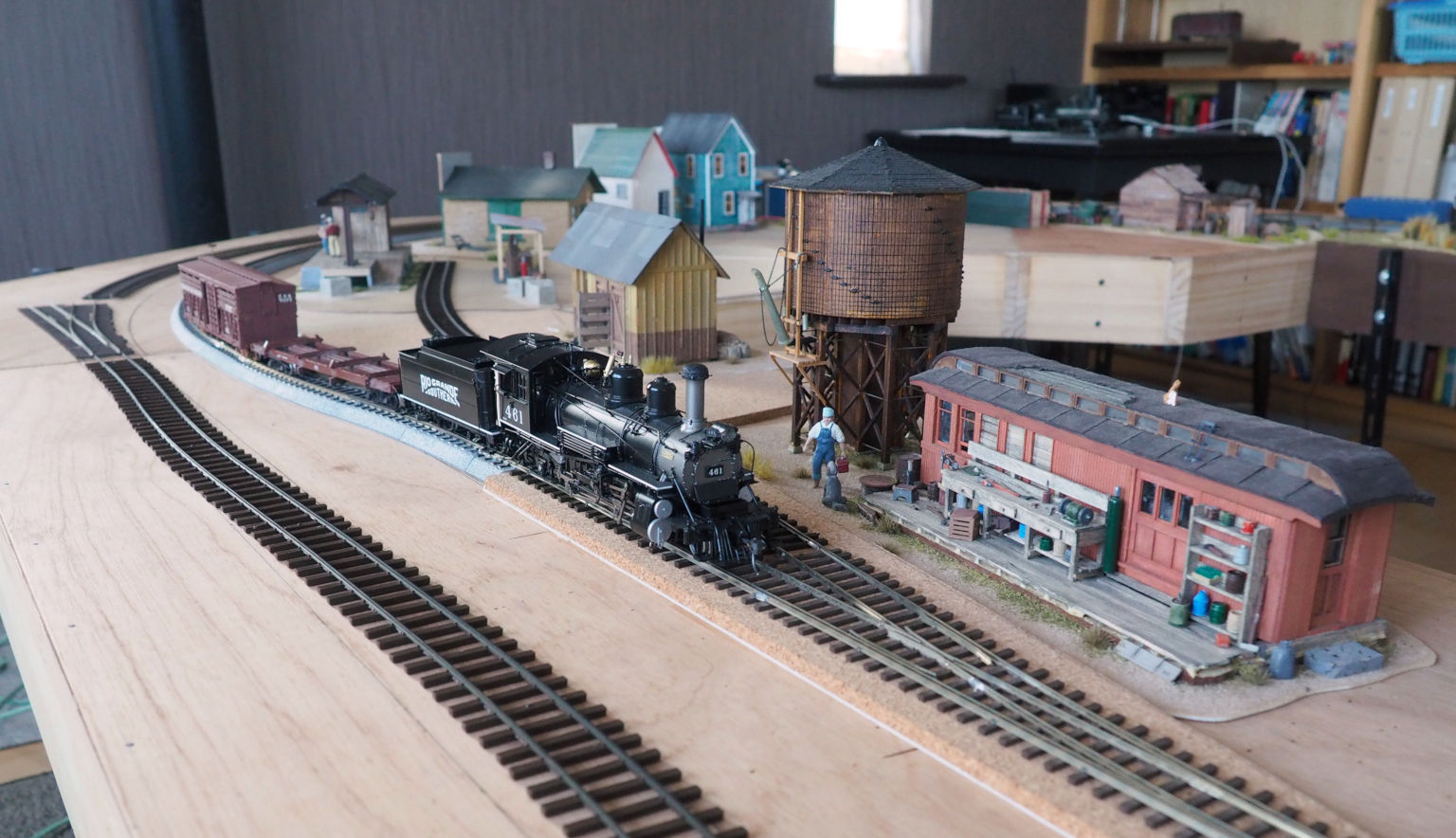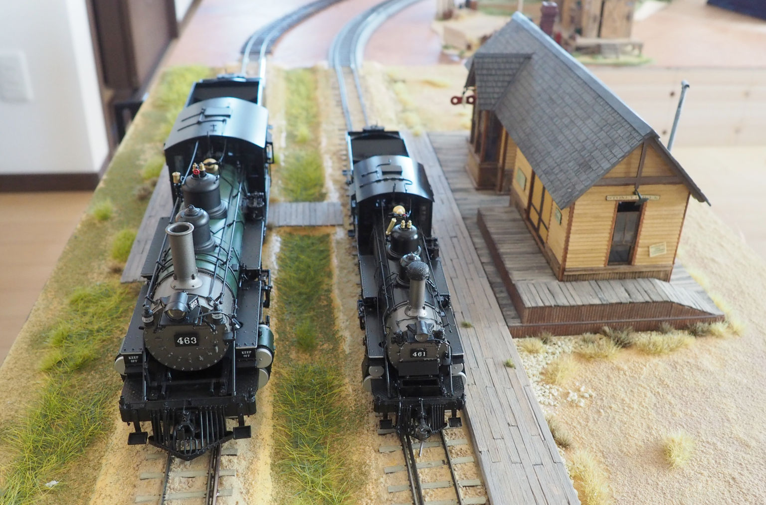 内円は、HOのユニトラックを使ったOn30/Sn3の線路.