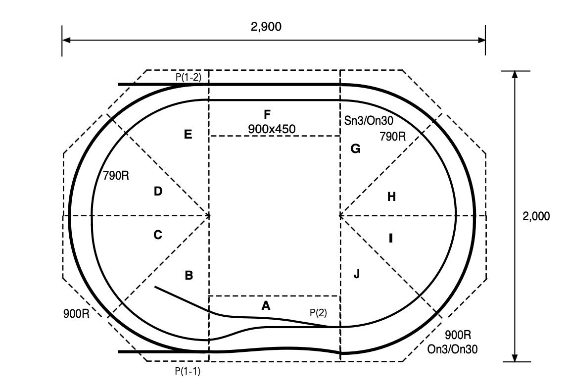 3ヶ所のポイントのうちP(1-1)とP(1-2)は同時切替なので