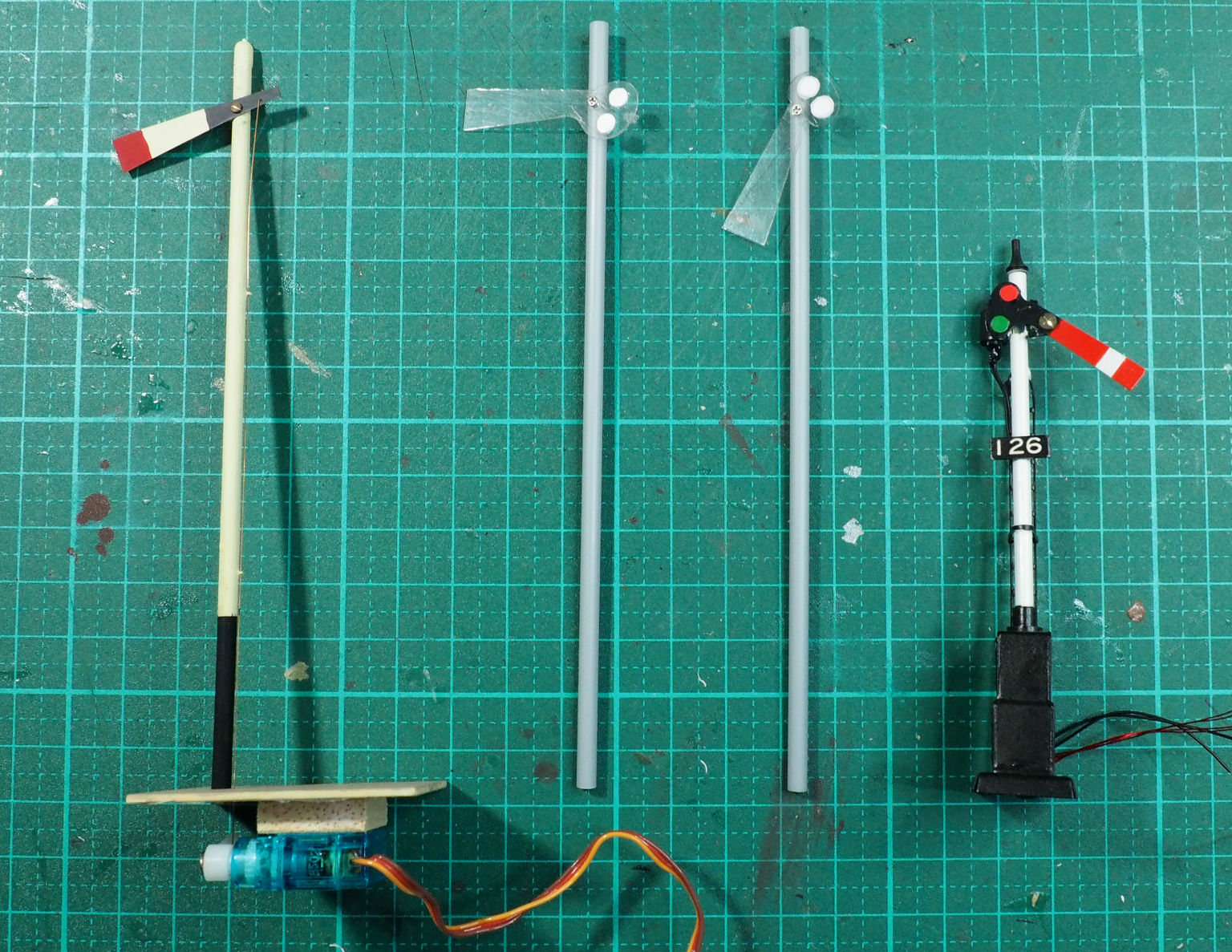 これを元に、ライト付きの腕木式信号機を2本作る.