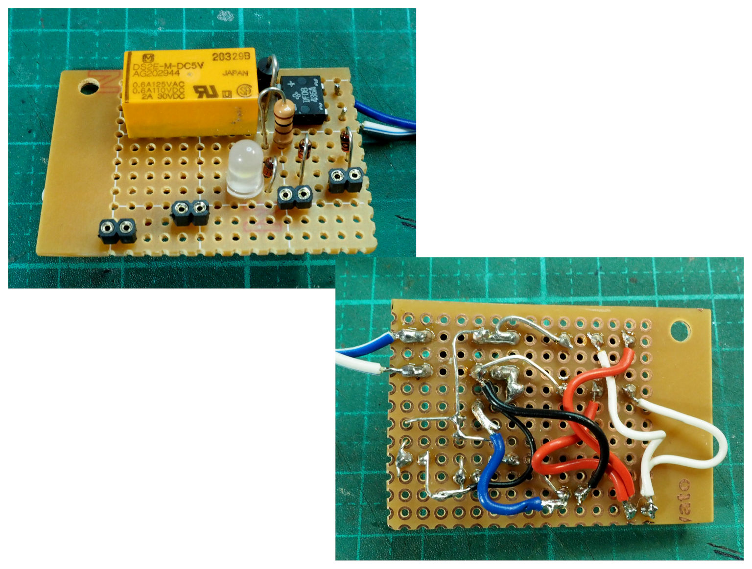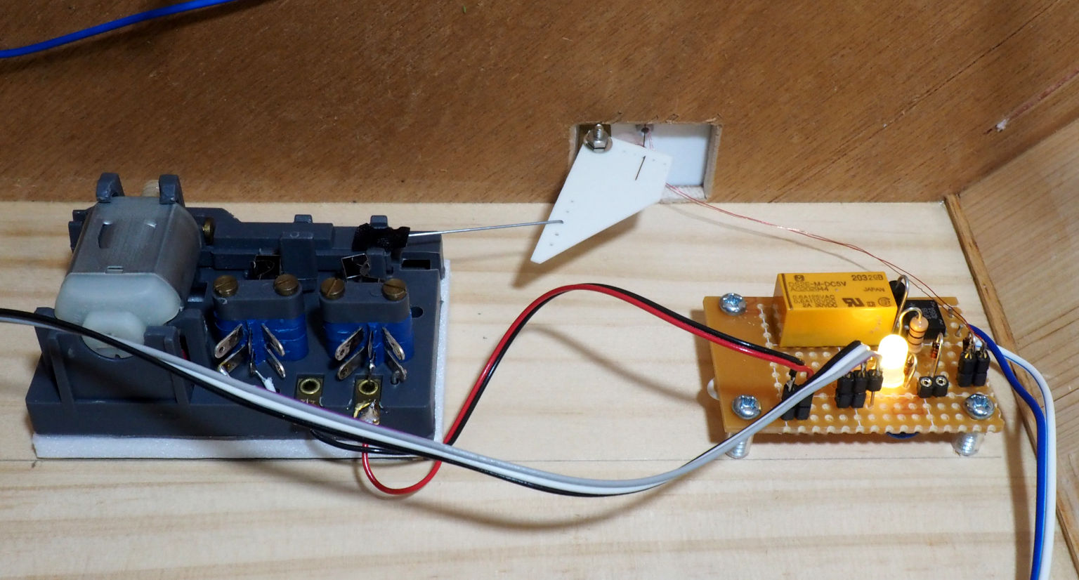 Tortoiseには予備接点が2回路あるので、これを使えばリレーは不要だが、あいにく1回路はポイントのクロッシングの給電に使っている.