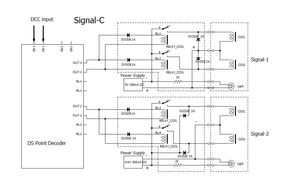 「DS Point Decoder」と信号機をむすぶ、今回の「リレーIF」回路.