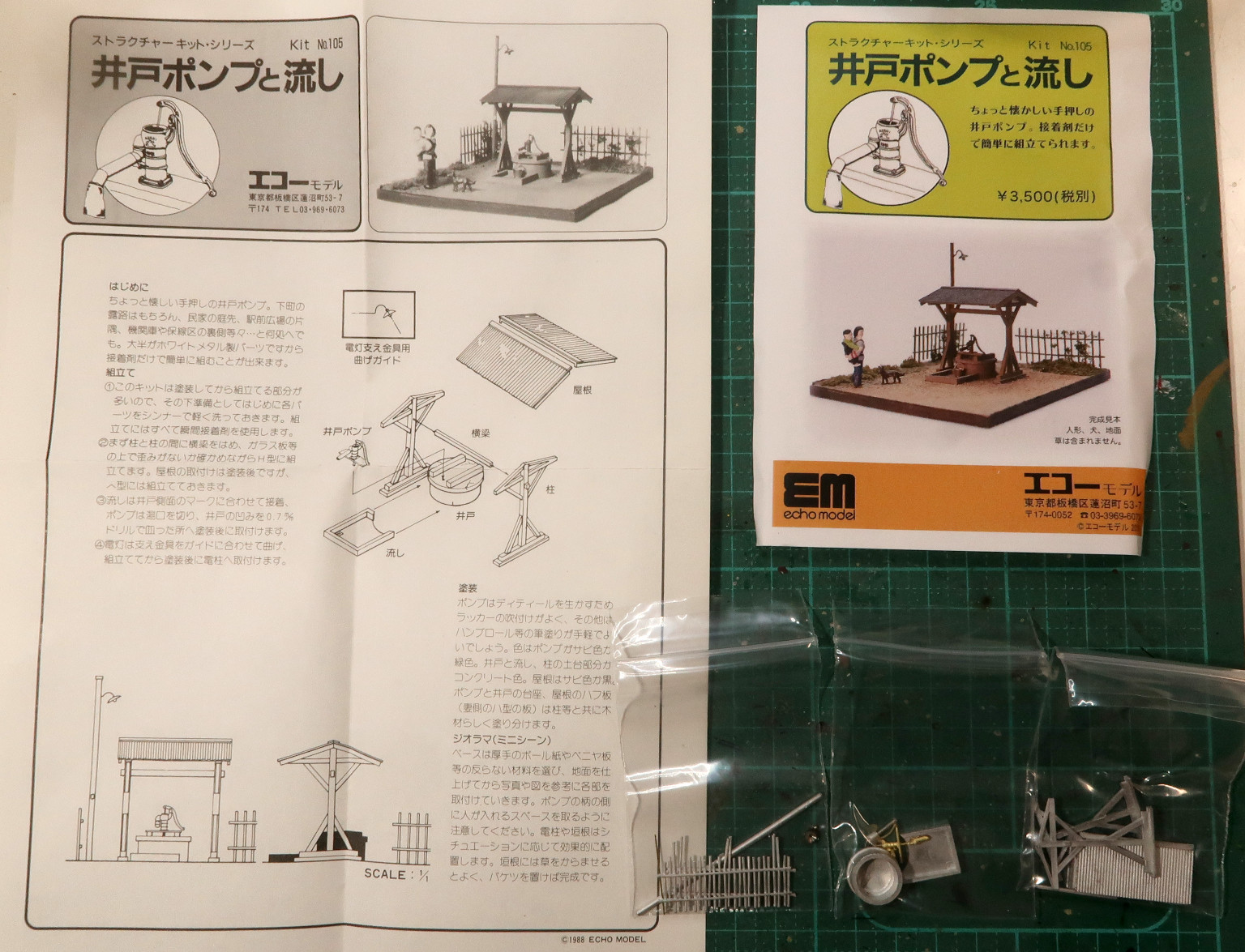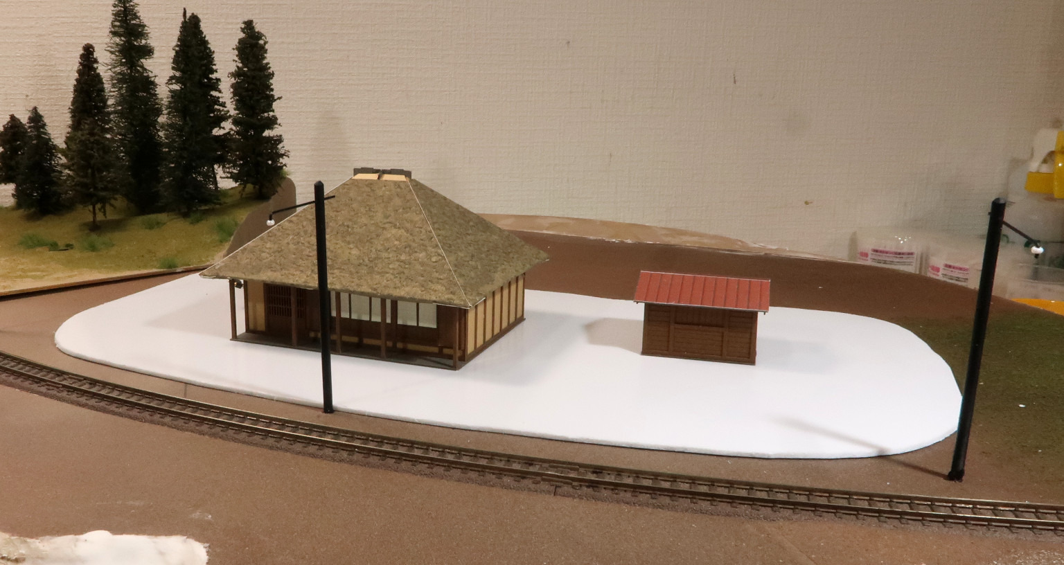 プラ板で作った地面に、付属の物置と一緒に並べてみる