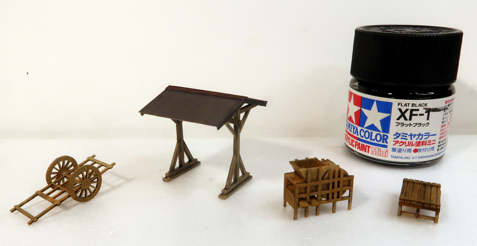 「茅葺民家」の付属品、大八車、唐箕(とうみ)、縁台と一緒に着色