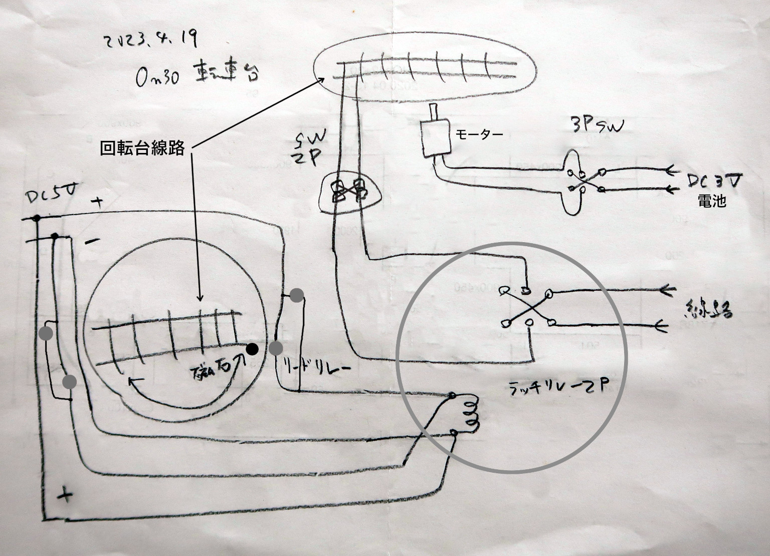 テーブルの回転に合わせて線路の「+-」を切り替える.