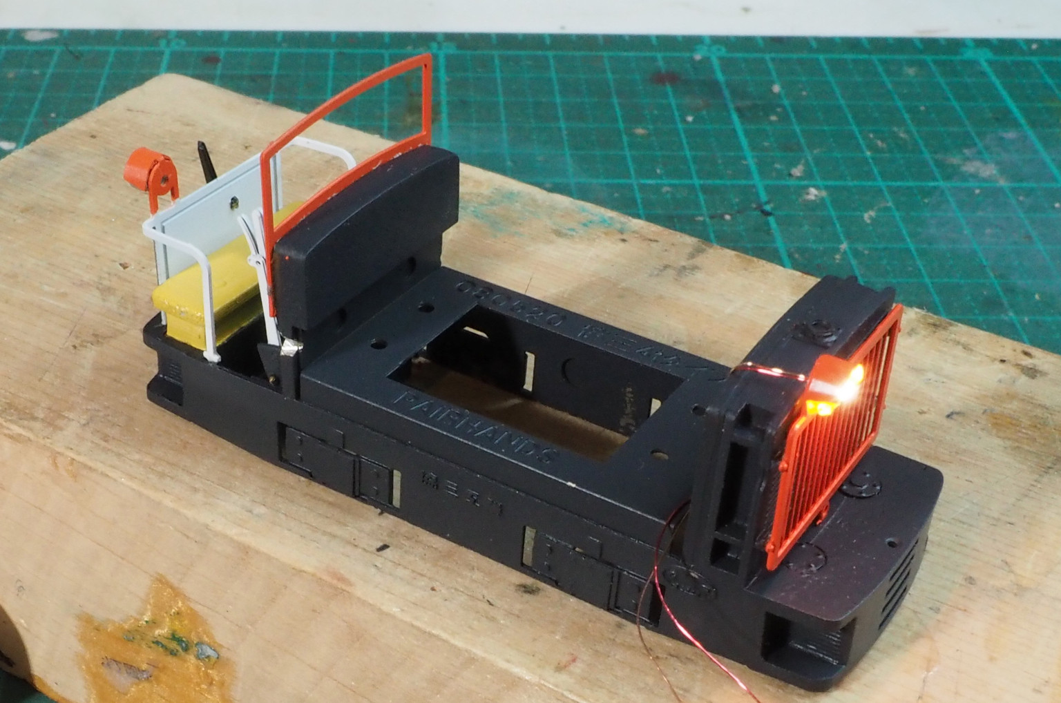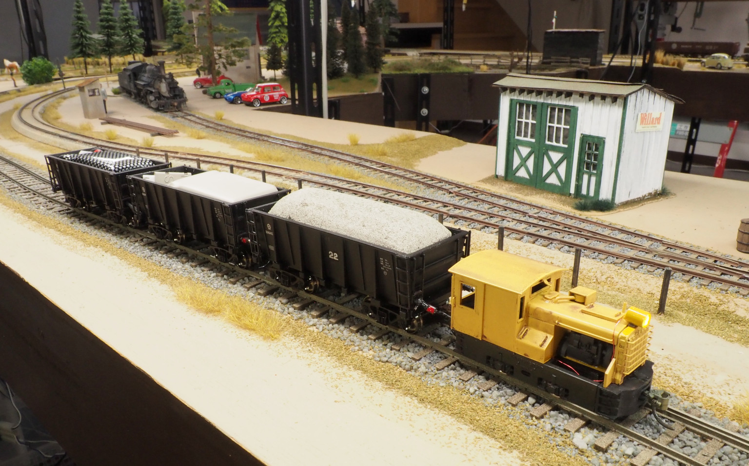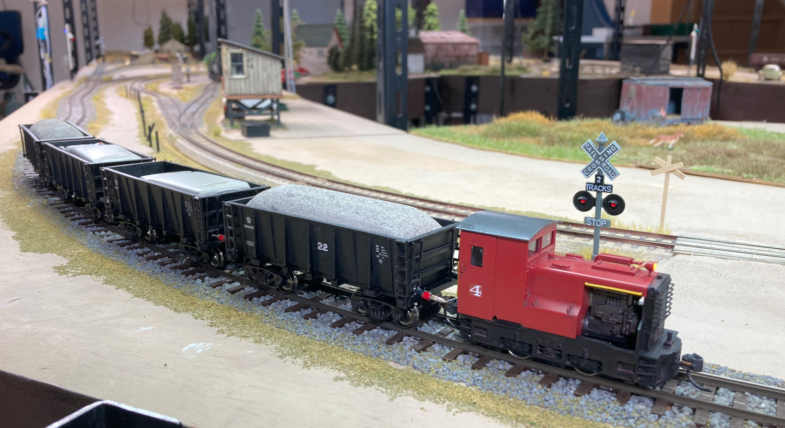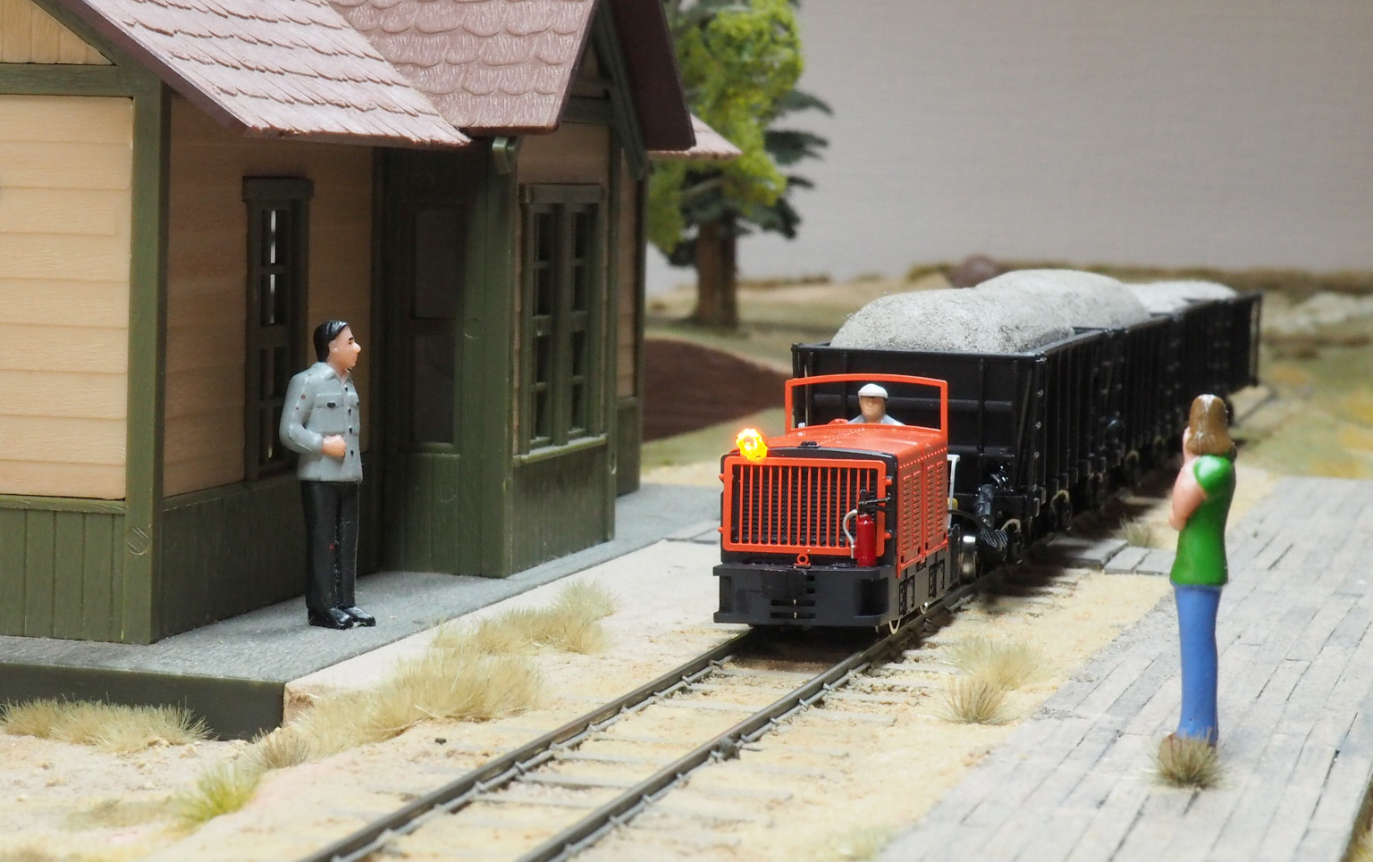 後ろのバッテリー車はHOスケールの貨車です.