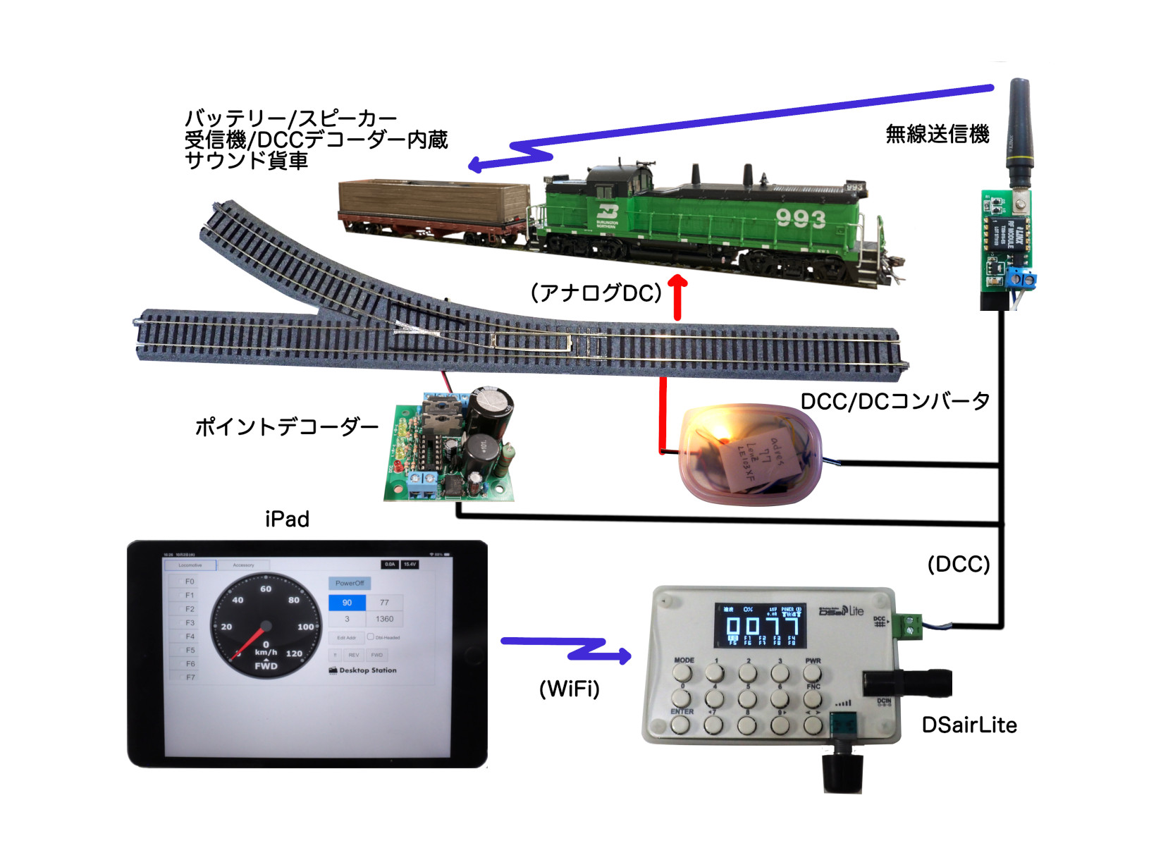 DSairLiteは操作せず、iPadでロコとポイントの制御をする.