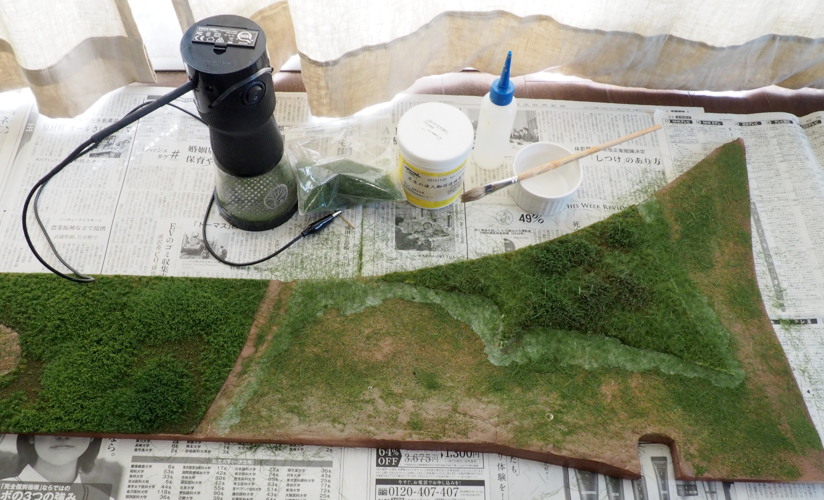 手前の地面は、4mm厚の「プラダンボード」板で作る