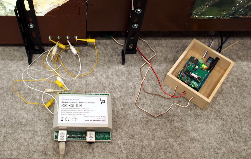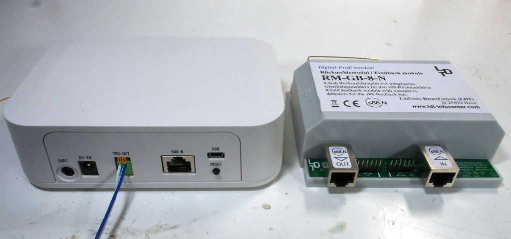 「RM-GB-8-N」は、線路のギャップを通してDCC車両の在線チェックをする機器で、欧州では標準的に普及している規格らしい.