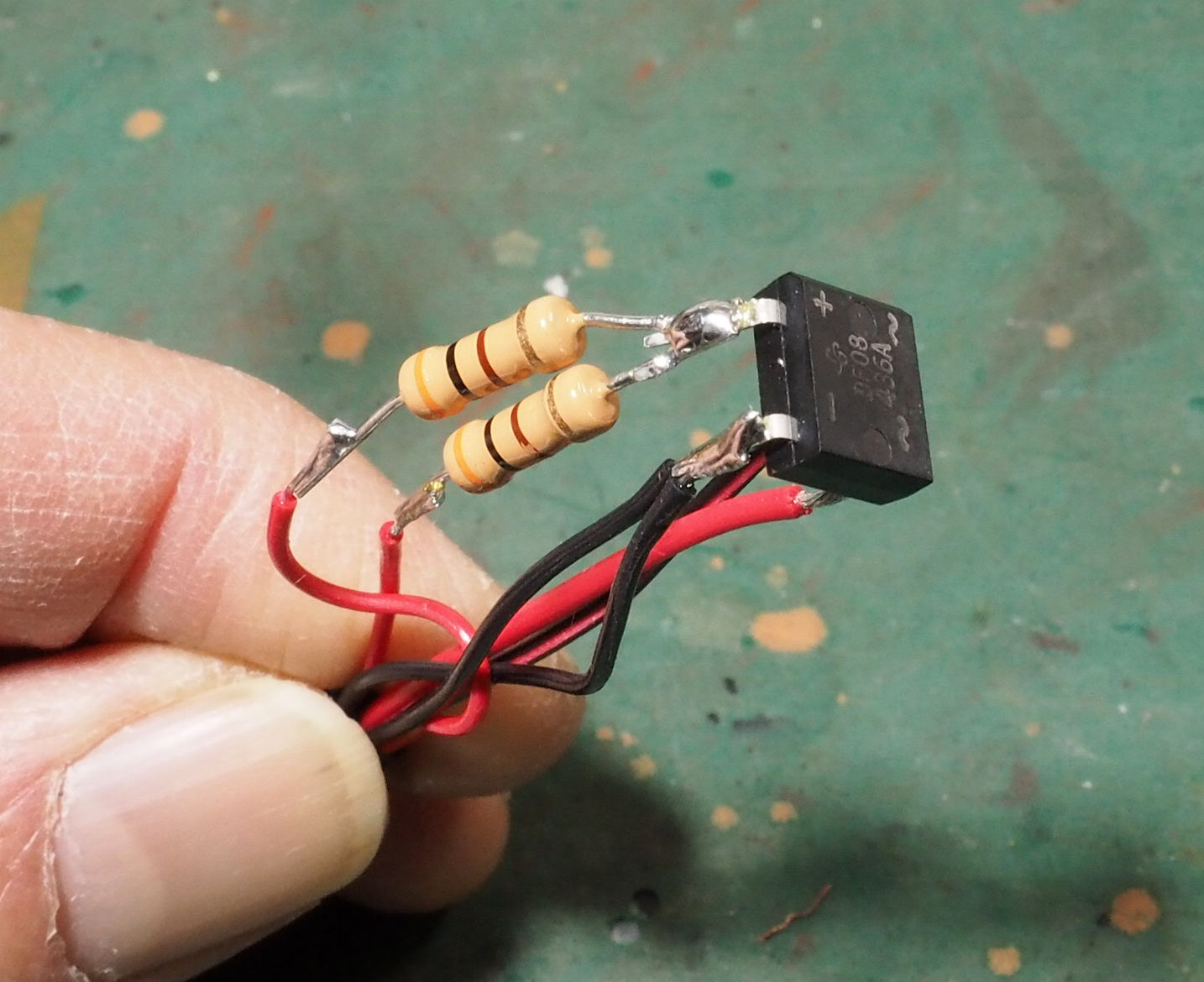 整流ブリッジの出力にそれぞれ抵抗をつけて、7本の出力コードを出している.