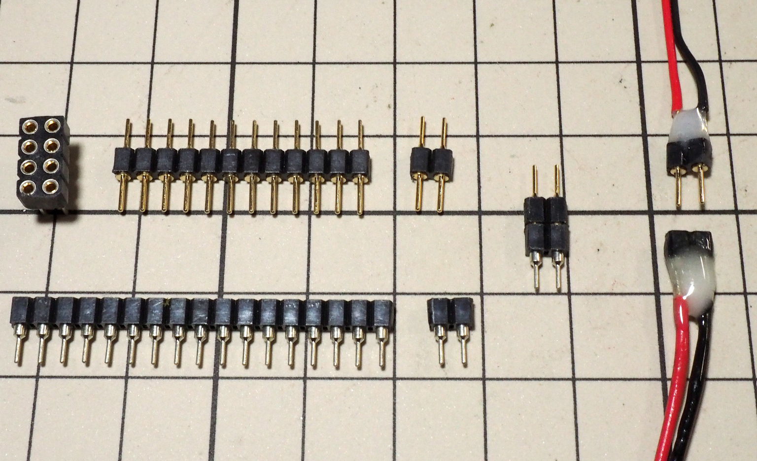 コネクタはいろいろ探したのだが、結局、2.54mm間隔のピンコネクタを使っている.