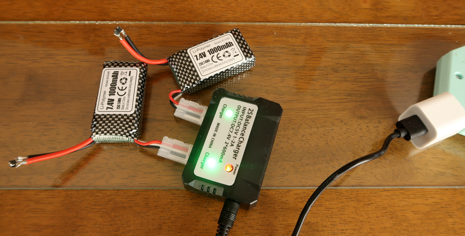 7.4V1000mAhリポ電池2個と充電器のセットは、