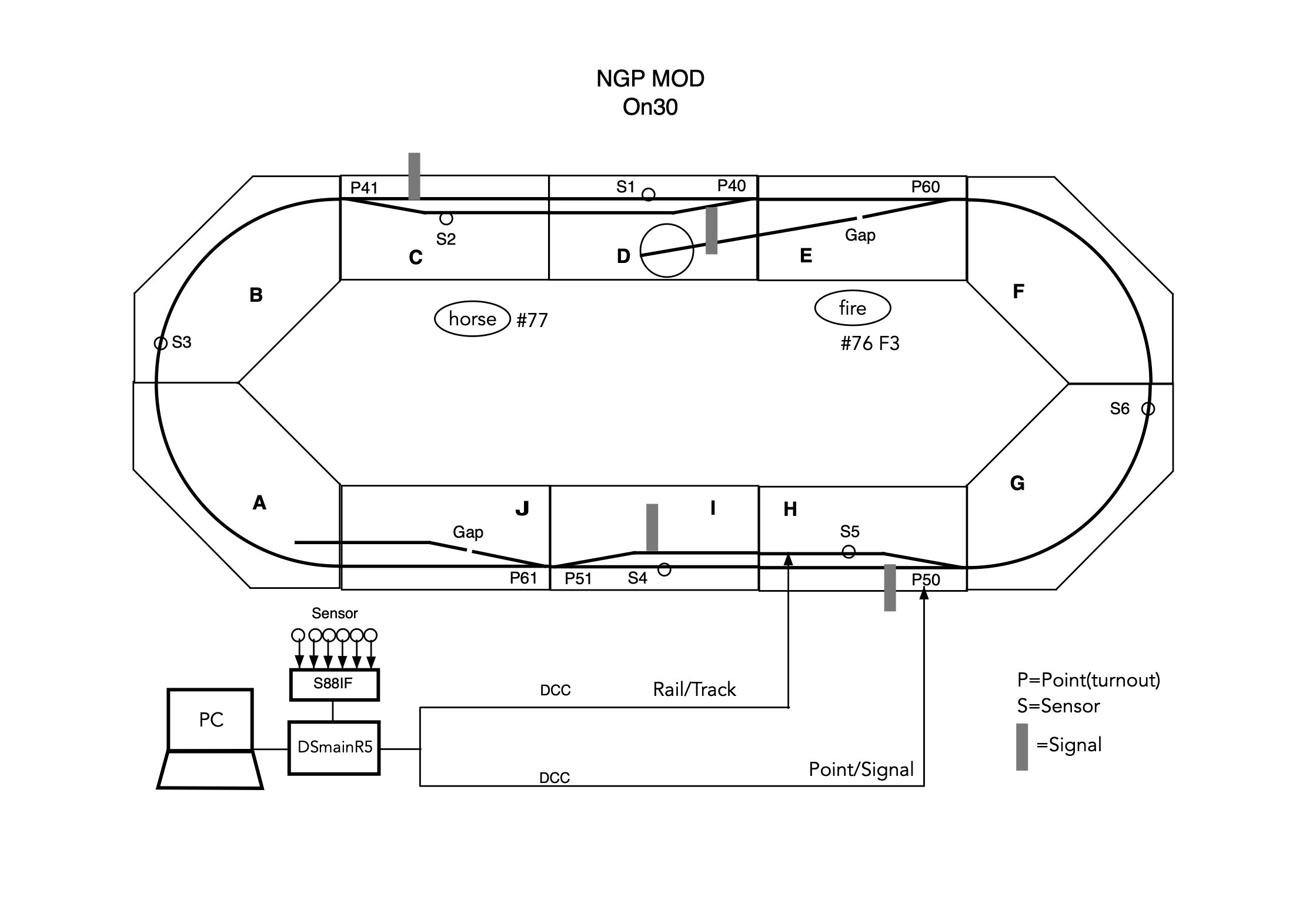 変更点は、列車が駅を出発し、P3またはP6のセンサーを通過すると、出発駅の信号を閉じるようにプログラムを書き換えたこと.