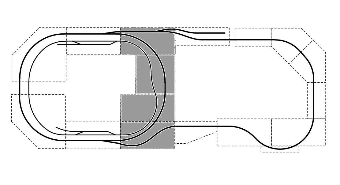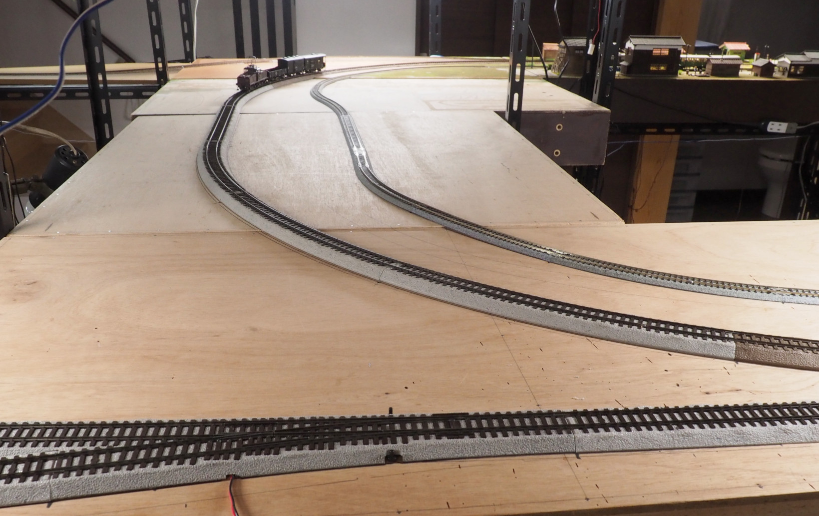 IMONの12mm線路と9mmユニトラック線路を半固定してある