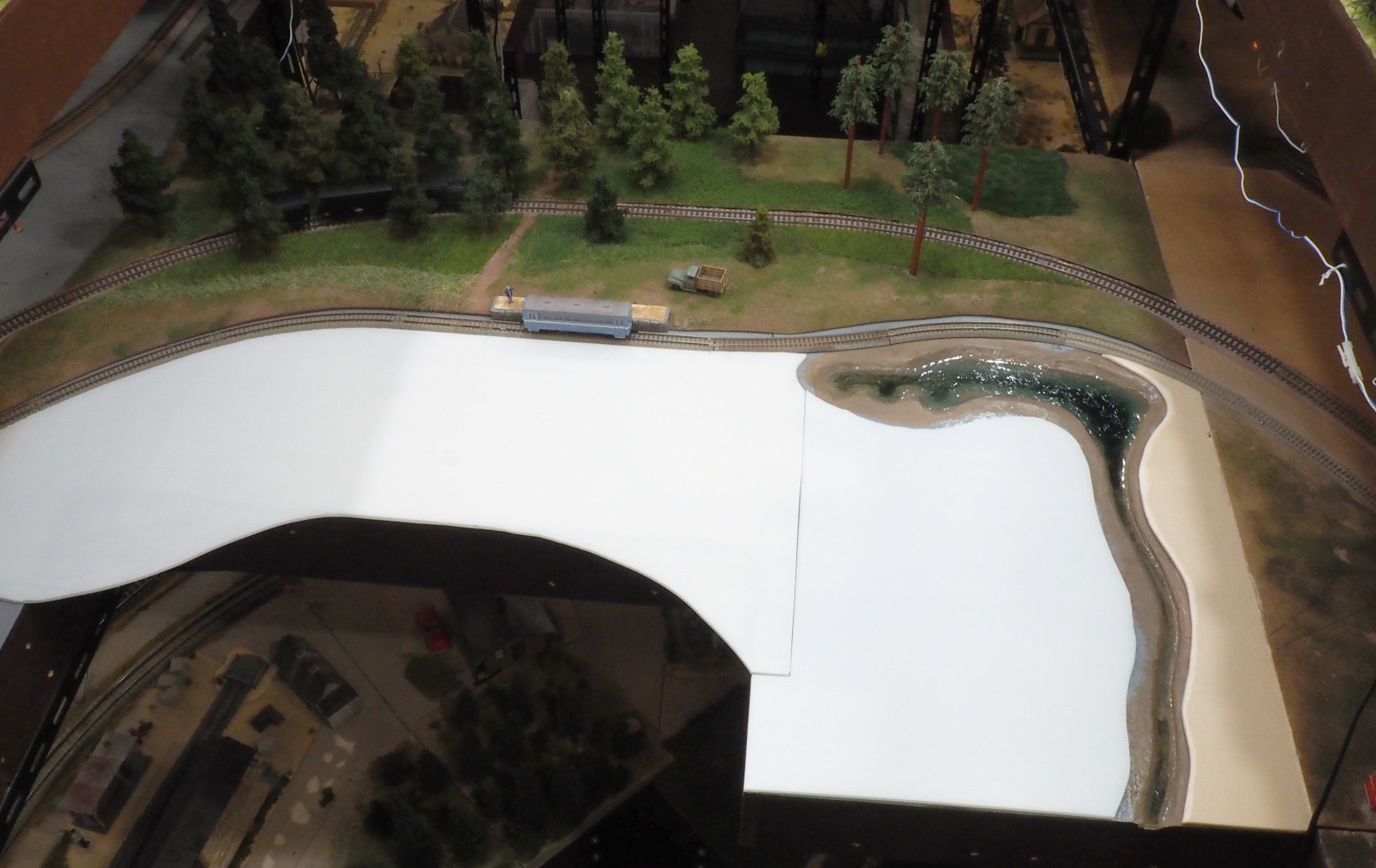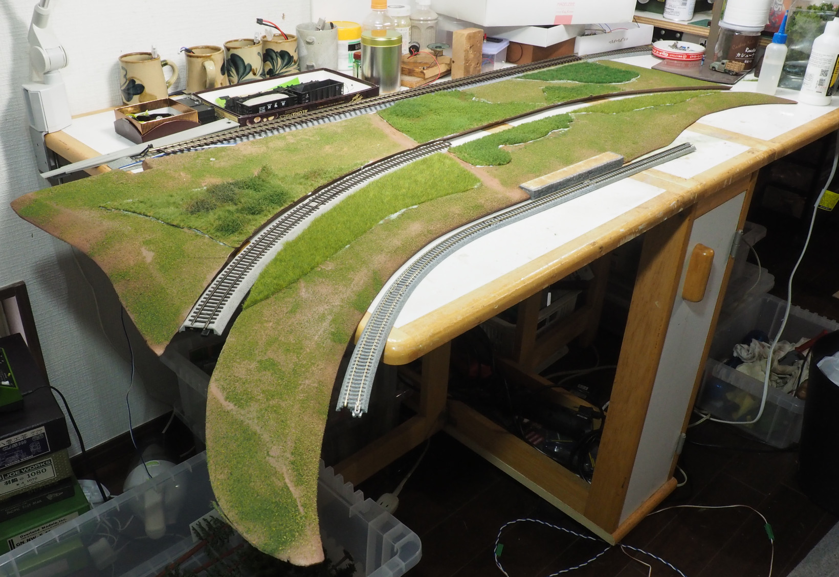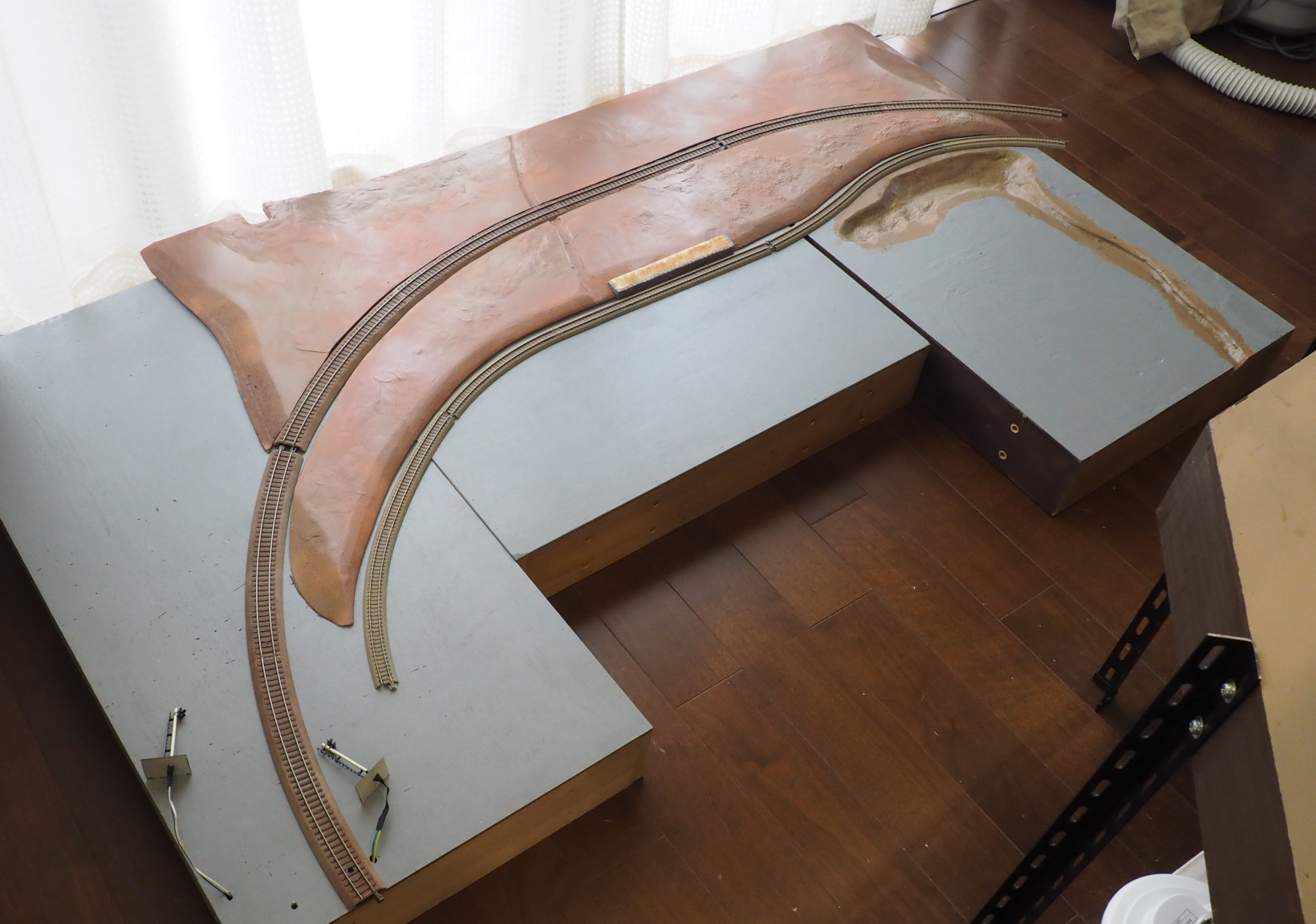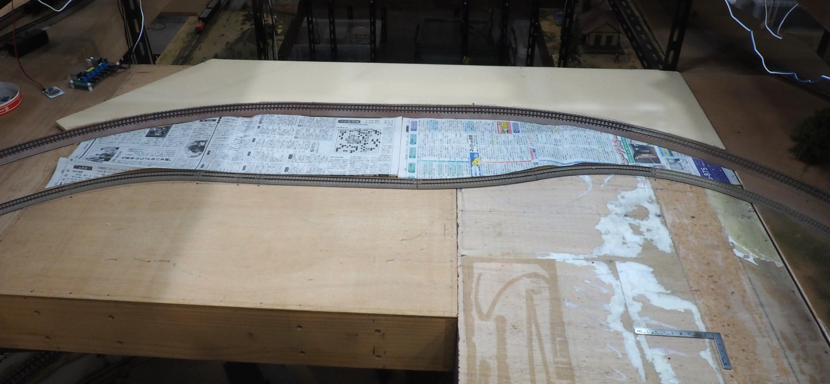 線路間の型紙をとって、10mm厚のスチロール板で土地を作る