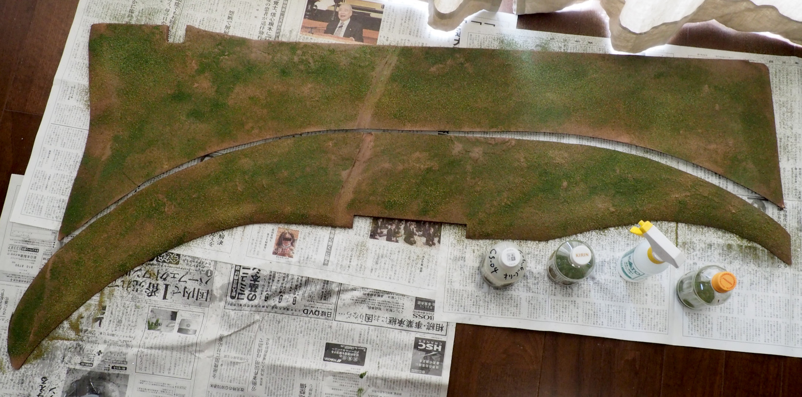 手前の地面は、4mm厚の「プラダンボード」板で作る